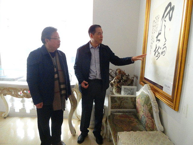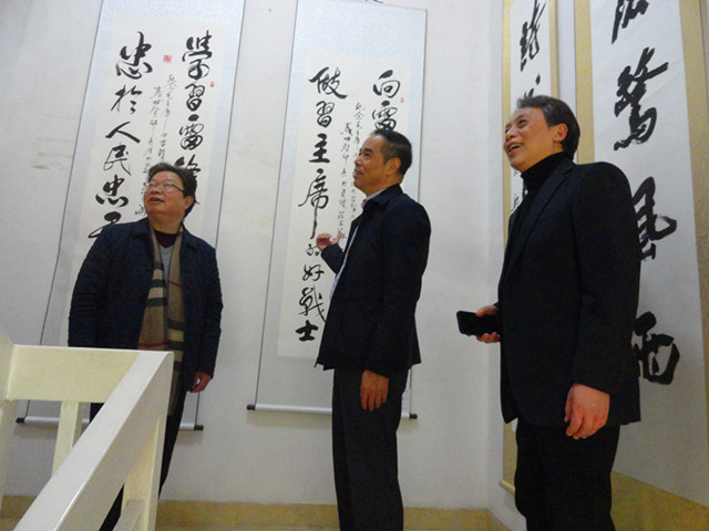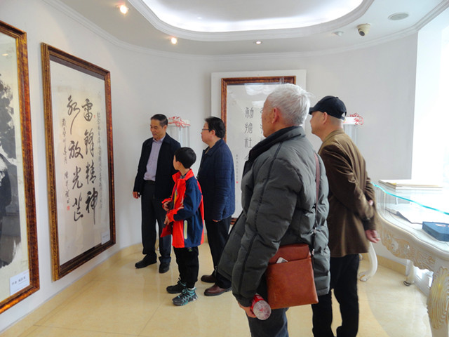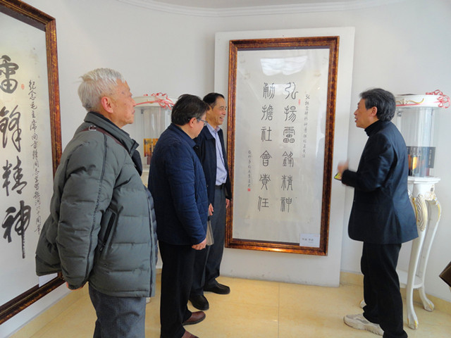開幕式結(jié)束后,嘉賓們興致勃勃地參觀了書畫展。記者現(xiàn)場看到,整個(gè)展覽共有5層樓,展示的書法作品行書、草書、隸書、篆書和楷書等應(yīng)有盡有,橫幅、豎條、冊頁、屏條、扇面等不一而足。內(nèi)容有抄錄偉人題詞、雷鋒日記,還有更多的自創(chuàng)詩詞、感悟、感言等。繪畫作品,即有國畫,也有油畫,即有人物、山水,還有花鳥,即有工筆,也有寫意。嘉賓們普遍認(rèn)為,本次書畫展藝術(shù)性強(qiáng),品位高,觀賞性與教育性俱佳,行家有借鑒,觀眾有看點(diǎn),雅俗共賞,接地氣。