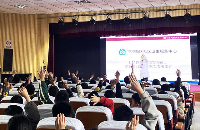 當(dāng)日上午,該院還派出結(jié)核病專家焦最嬋主任和空港新區(qū)社區(qū)服務(wù)中心的工作人員,在新港實驗小學(xué)給200名五年級學(xué)生進(jìn)行了專題“防治結(jié)核病”專題講座。用通俗易懂的語言,重點圍繞結(jié)核病的病因、傳播途徑、癥狀、預(yù)防措施等方面進(jìn)行了深入淺出地講解,學(xué)生全程聽講認(rèn)真,積極互動。下午3點--4點半,該院還進(jìn)行了世界防治結(jié)核病日專題直播,直播間人氣高漲,在線人數(shù)達(dá)數(shù)千人,回答了100多位粉絲提出的相關(guān)問題。