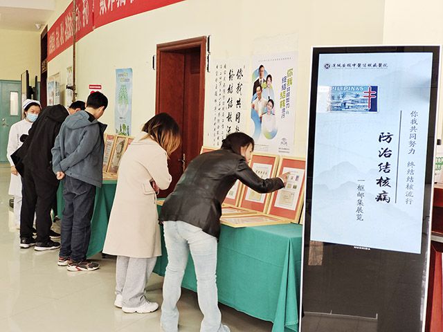 門診大廳舉辦的《結(jié)核病防治》專題郵票展,展示了國內(nèi)外早期和現(xiàn)代的有關(guān)結(jié)核病郵票和郵品計16個貼片,受到醫(yī)患的青睞,觀展者流連忘返。據(jù)悉,該郵集主要郵品有瑞士1913年發(fā)行的抵抗結(jié)核病明信片、中國1948年發(fā)行的“資助防癆”附捐郵票、秘魯1953年發(fā)行的較為罕見的“防肺結(jié)核兒童附捐”郵票,還有國家郵政局為安國醫(yī)院發(fā)行的個性化郵票等。