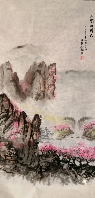 王永政 中國畫 《人間四月天》138*69 厘米