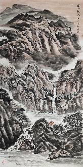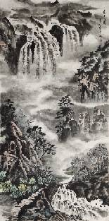 陸鴻義中國畫 《云山飛瀑》 138*69 厘米