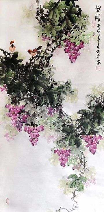 姚伯君 中國畫《豐碩》 138*69 厘米