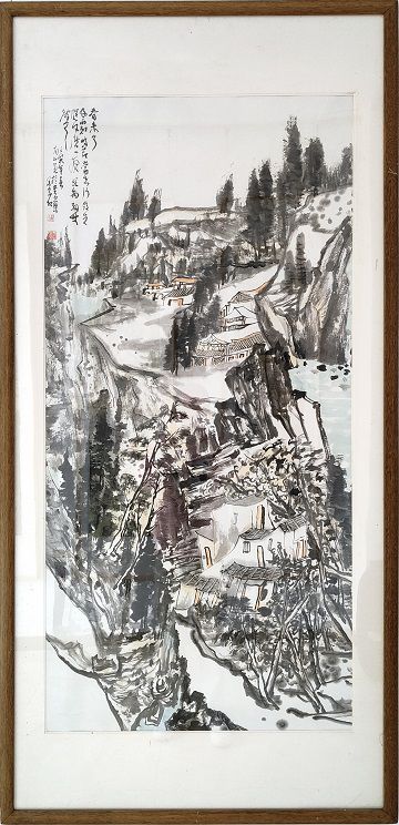 李志磊中國畫《幽谷聽泉》 138*69 厘米