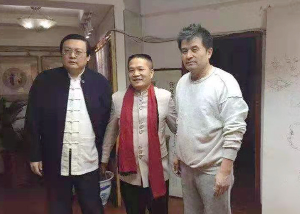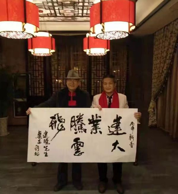 吳建騰會長(右)與文化界朋友交流合影