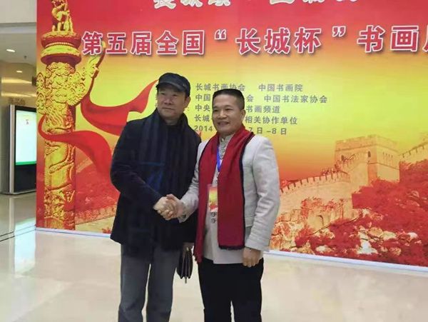 吳建騰會長(右)與書畫界朋友交流合影
