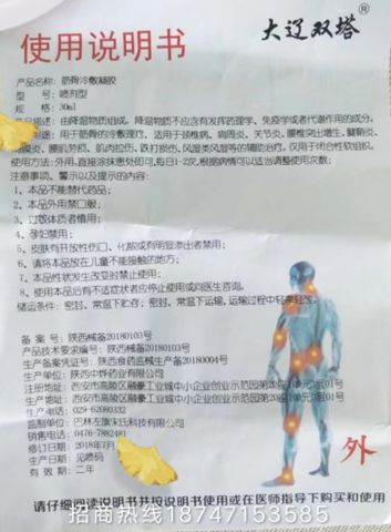 據(jù)悉,“筋骨冷敷凝膠”的主要成分,有三七、川烏、草烏、蜂毒、冰片、天麻、酒精、花椒等;適用范圍為跌打損傷、消腫止痛、消炎撤火、風(fēng)濕類風(fēng)濕關(guān)節(jié)炎、頸椎病,腰間盤突出、肩周炎,骨刺,各種腰疼腿痛,風(fēng)疹,濕疹,各種皮炎,各種腳氣等;使用方法:外用,噴于洗凈的患處,每日三次,癥狀消失后繼續(xù)使用本品七天,以防復(fù)發(fā),形成骨刺者噴于患處二分鐘后,按摩五分鐘。