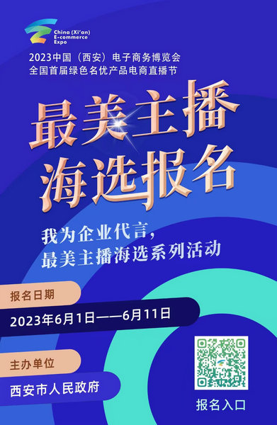 為配合2023中國(西安)電子商務(wù)博覽會(以下簡稱:電商博覽會),更好的宣傳推廣電商博覽會、智慧農(nóng)業(yè)與綠色農(nóng)產(chǎn)品展銷會,由陜西愛國實業(yè)有限公司等單位于6月1日—7月20日執(zhí)行承辦“我為企業(yè)代言,最美主播海選活動。”活動通過網(wǎng)絡(luò)直播方式,讓網(wǎng)紅主播參與到電商博覽會活動宣傳工作中,擴(kuò)大活動宣傳力度及影響力。