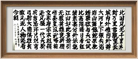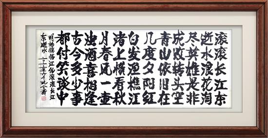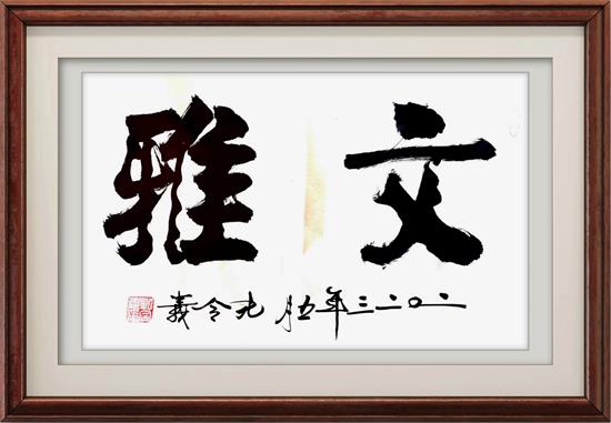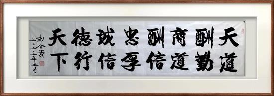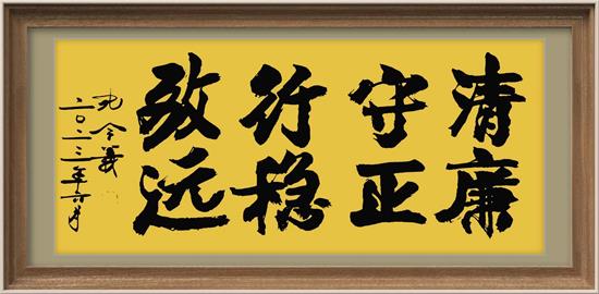 3.孔令義書(shū)法的簽名落款,也堅(jiān)持了先簽名蓋章,再簽署公元紀(jì)年年號(hào),與時(shí)代發(fā)展同相而行。簽名和蓋章是記載作品作者和所處的時(shí)代,就要與所生活的時(shí)代相統(tǒng)一相一致。查看歷史上,很多名人大家,名字名貼,也都是這樣做的。