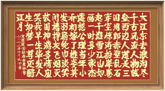 隨著時(shí)代不斷進(jìn)步,書(shū)法文化求新求變的理念也在提升,孔令義將軍在遵循書(shū)法史研究中創(chuàng)立了新型書(shū)體。以楷書(shū)的框架結(jié)構(gòu)為基礎(chǔ),保持字的形體四角飽滿(mǎn),昂揚(yáng)挺立,而在筆法上,把隸書(shū),楷書(shū),行書(shū)筆法巧妙運(yùn)用,讓所寫(xiě)字體架構(gòu)豐滿(mǎn),蒼勁有力,有豐富的傳統(tǒng)文化蘊(yùn)含其中。