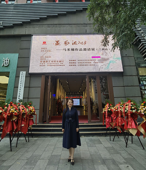 2023924日上午10:00時(shí),由甘肅省文學(xué)藝術(shù)界聯(lián)合會(huì)主辦,甘肅省美術(shù)家協(xié)會(huì)、甘肅省藝術(shù)館承辦,中國國家畫院人物畫所給予學(xué)術(shù)支持的“墨彩游心”——馬米娜作品邀請(qǐng)展(蘭州站)在甘肅省藝術(shù)館隆重開幕。