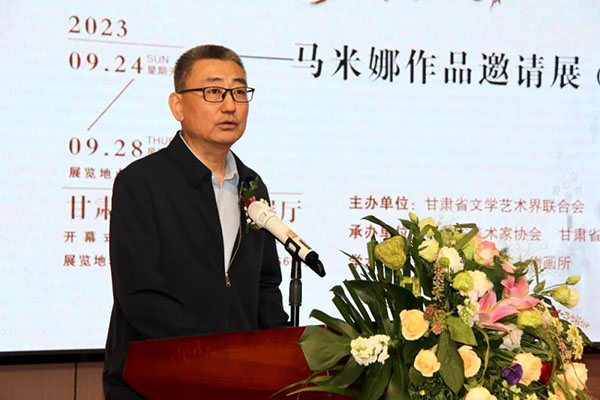 甘肅省文學(xué)藝術(shù)界聯(lián)合會(huì)副主席、甘肅省美術(shù)家協(xié)會(huì)主席馬剛致辭