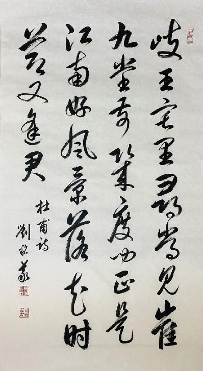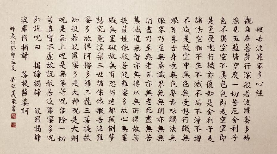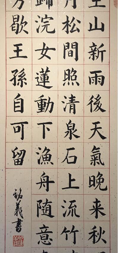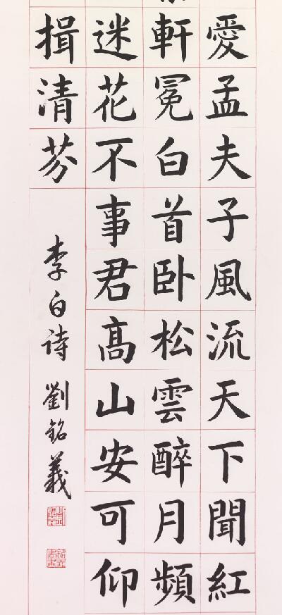 劉銘義楷書,初學(xué)柳公權(quán)后學(xué)歐陽詢、殷令名、虞世南、褚遂良、顏真卿、趙孟畹讓冶馕趺宓目櫬螄鋁思崾檔幕?,暑欫的楷蕶壴柦外圆、端庄典褦Q⑽氯笮勱 A趺逍脅菔椋妊д悅項(xiàng)、董其昌、智永草書千字文、孫過庭書譜、米芾諸帖,后研習(xí)王羲之“集王圣教序、十七帖、蘭亭序”和王獻(xiàn)之諸帖。劉銘義繼承了古人的學(xué)書之道,臨帖一絲不茍力求神形兼?zhèn)洌男胁輹羌偌抑L融會(huì)貫通,形成了自己獨(dú)特的藝術(shù)風(fēng)格。