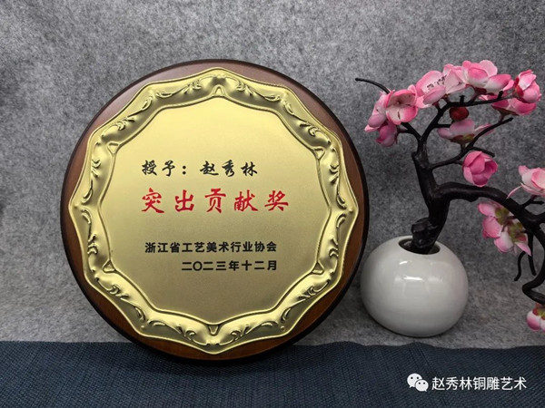 趙秀林老師是當(dāng)代紹興銅雕技藝領(lǐng)軍人物,出生于紹興柯橋華舍,被聯(lián)合國(guó)教科文國(guó)際民間藝術(shù)組織授予“國(guó)際民間工藝美術(shù)家”稱(chēng)號(hào),是中國(guó)民間文藝家協(xié)會(huì)會(huì)員、中國(guó)工藝美術(shù)學(xué)會(huì)會(huì)員、浙江省工藝美術(shù)行業(yè)協(xié)會(huì)常務(wù)理事、紹興市工藝美術(shù)行業(yè)協(xié)會(huì)副會(huì)長(zhǎng)、紹興市柯橋區(qū)工藝美術(shù)行業(yè)協(xié)會(huì)會(huì)長(zhǎng)。