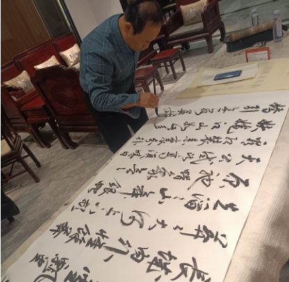 這是一場書畫與紅木的“邂逅”,書畫藝術家們,置身于紅木家具的環(huán)境氛圍中,熱情奔放,豪情滿懷,煥發(fā)出強烈的創(chuàng)作熱情,他們個個大膽創(chuàng)新,揮毫潑墨,充分展現(xiàn)了自已的才藝,生動而形象的闡釋著對書畫藝術的追求和熱愛,在他們的共同努力,一幅幅書畫作品相繼創(chuàng)作完成,或清新典雅,或大氣磅礴,幅幅都是精品?,F(xiàn)場可謂水彩飛舞、翰墨飄香,贏得了在場人們的美譽和贊揚。