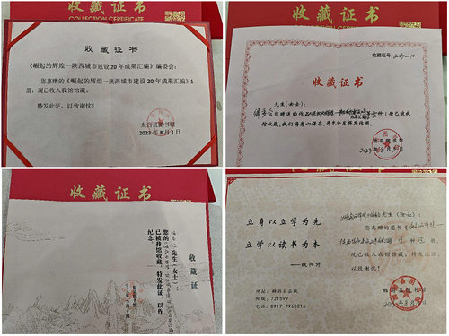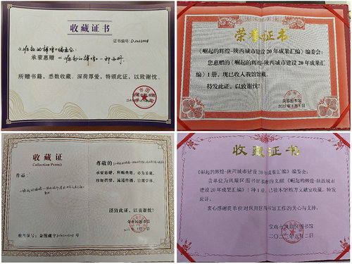 繼2023年2月9日,大型畫冊《崛起的輝煌一陜西城市建設(shè)20年成果匯編》編委會委托西北建設(shè)雜志社寶雞聯(lián)絡(luò)處主任魯宏偉為寶雞市圖書館捐贈了畫冊,市圖書館地方文獻中心主任姚凌娟接受捐贈并為編委會頒發(fā)了收藏證書后,寶雞市渭濱區(qū)圖書館、鳳縣圖書館、金臺區(qū)圖書館、寶雞市鳳翔區(qū)圖書館、太白縣圖書館、隴縣圖書館、岐山縣圖書館、眉縣圖書館、麟游縣圖書館、寶雞市陳倉區(qū)圖書館、千陽圖書館、扶風縣圖書館也收藏了大型畫冊《崛起的輝煌一陜西城市建設(shè)20年成果匯編》,并為編委會頒發(fā)了證書。姚凌娟代表市圖書館向《崛起的輝煌》編委會表達了謝意,感謝編委會對寶雞地方文獻工作的支持,并表示他們會及時將畫冊展閱給讀者,讓更多的讀者受益。