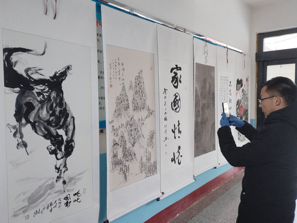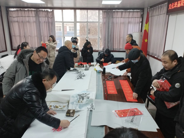 來自咸陽(yáng)的書畫家孟紀(jì)青、任山源、馮世平、鄭海和李翰迪為機(jī)關(guān)干部職工現(xiàn)場(chǎng)進(jìn)行了書畫創(chuàng)作,并書寫了數(shù)十幅春聯(lián),喜迎龍年到來。