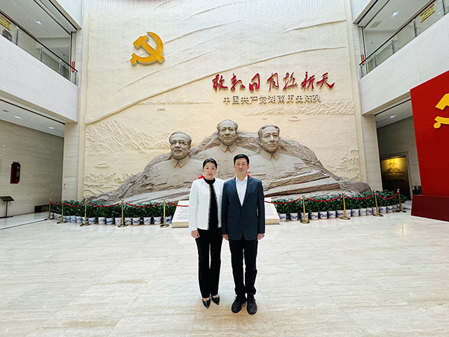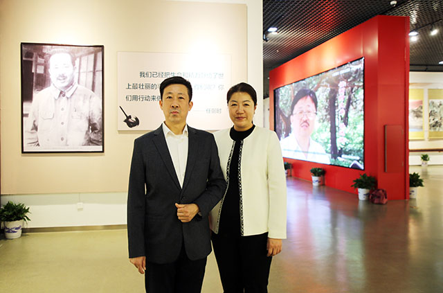 任弼時(shí)同志嫡孫任繼寧、孫媳李萌在書畫展現(xiàn)場。