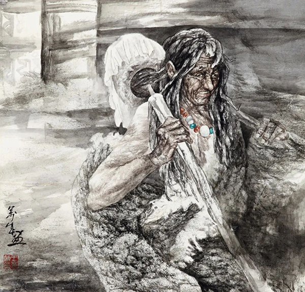 藏地燦爛多姿的歷史人文、自然環(huán)境所體現(xiàn)出對生命的禮敬和追尋,吸引著諸多藝術(shù)家的眼光。王萬成生長于西北,40年來常常深入藏地采風寫生,與藏族同胞共生活,創(chuàng)作出眾多令人動容的水墨人物畫作品。他的現(xiàn)實主義水墨人物畫恰當?shù)卣{(diào)和了自由筆墨與嚴謹造型之間的關(guān)系,既繼承了中國傳統(tǒng)水墨的基本特質(zhì),又引入西方當代的造型元素與敘事方式,更加突顯了對藏族題材水墨人物畫的深入探索以及對藏族同胞精神的熱情歌頌。