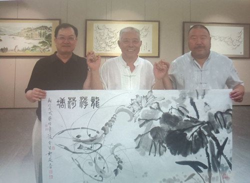 鄭家喜老師與好友國際杰出華人藝術(shù)家蔡俊章博士在北京的兩岸藝術(shù)交流筆會上合影。
