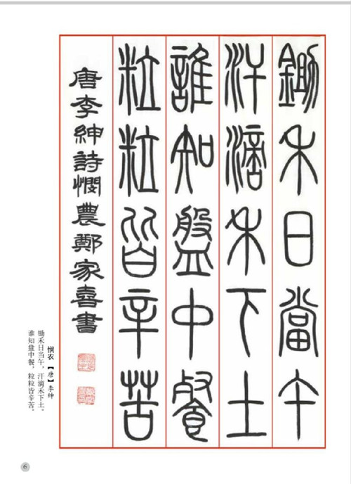 正是這樣的品格讓鄭老師筆下的書法剛中帶柔,正派大氣,讓古代書體之美呈現(xiàn)在天真無邪的孩子們——我們祖國花朵的視野里。在朗朗上口的詩韻中讓學(xué)子們感受中華文字橫豎撇捺的妙趣與詩情畫意的真善美!