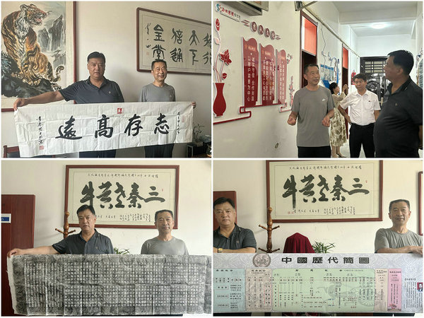 活動期間,沈兆新為許衙評贈送了國防大學(xué)客座教授、中國書畫家聯(lián)誼會副主席、世界華僑華人社團(tuán)聯(lián)合總會愛國宣傳委員會主任李春明將軍書寫的作品《志存高遠(yuǎn)》,許衙評為沈兆新回贈了已92歲的岳父、民間歷史學(xué)家、書法家吳志琪書寫并編撰的韻文詩《中國朝代繁衍》和繪制的《中國歷代簡圖》。