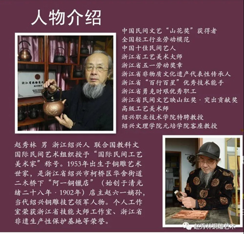 2024年10月1日,趙家銅藝作坊蘭亭店開業(yè)。該店位于書法圣地蘭亭景區(qū)內(nèi),以銅雕書法文房用品、茶器和銅文創(chuàng)展售為主。此外,店內(nèi)上墻展示作品均為近年來趙秀林老師獲得國家級獎項作品。