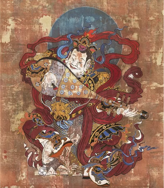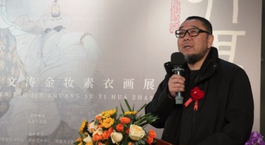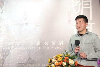 王文濤畢業(yè)于西安美術(shù)學(xué)院國畫系,“金妝素衣”系列作品的創(chuàng)作源于在他在西安美術(shù)學(xué)院就讀期間的敦煌之旅。“在創(chuàng)作過程中,我常常會想起敦煌壁畫中的那些精彩畫面,從中汲取創(chuàng)作的靈感和力量。我希望能夠?qū)⒍鼗捅诋嫷乃囆g(shù)精髓吸收融入到自己的作品中,去追尋古人的藝術(shù)密碼,在筆下煥發(fā)新的面貌。”王文濤表示。