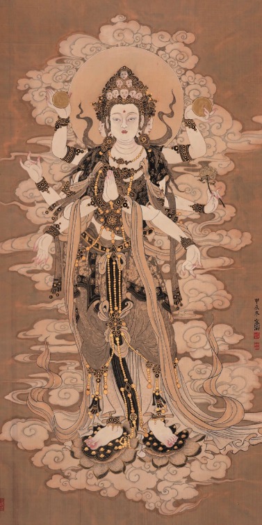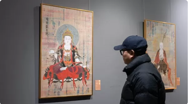 12月24日,“請福——王文濤金妝素衣畫展”在北京開幕,以動物畫著稱的青年畫家王文濤首次推出“金妝素衣”系列人物畫作品30余幅,精雕細(xì)琢之處體現(xiàn)了畫家的不斷攀登藝術(shù)高峰的心路歷程。他的作品不僅追求外形之美,更注重內(nèi)蘊(yùn)精神的呈現(xiàn),展現(xiàn)出對佛教文化的深刻理解和對人性光輝的不懈探索。