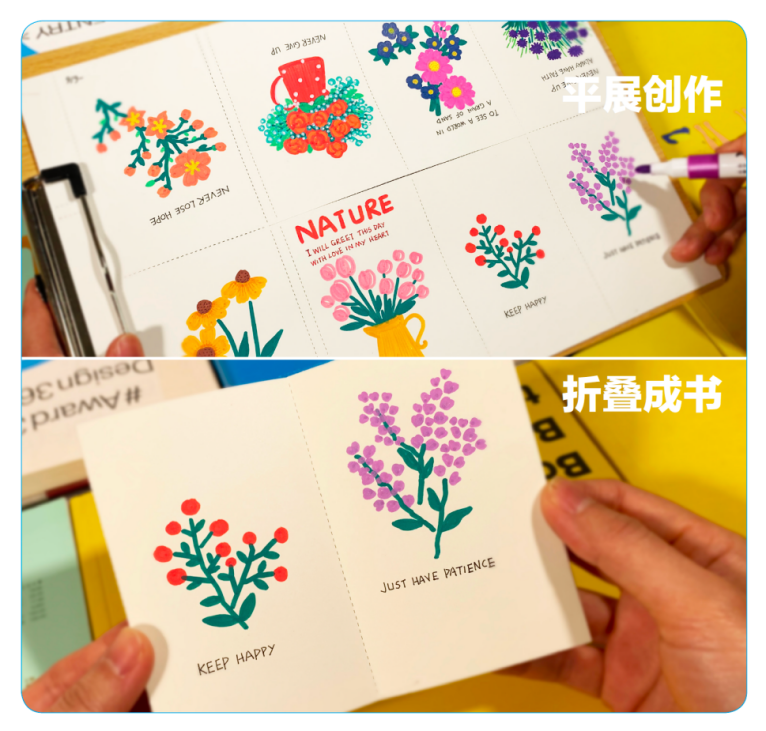 在展覽之外,美術(shù)館還準(zhǔn)備了豐富的公教活動。購買《能量宇宙》或雙展門票,可參與“新疆模戳印花”活動,體驗新疆非遺文化。還能親手DIY植物胸針,了解植物奧秘,制作獨(dú)一無二的飾品;有著作家夢的觀眾,購買《計深遠(yuǎn)——為兒童而設(shè)計》或雙展門票,能獲得手繪書材料,制作并“出版”專屬手繪小書,鐫刻才華。