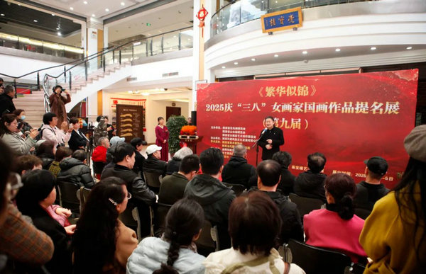 《繁華似錦》2025慶“三八”女畫(huà)家國(guó)畫(huà)作品提名展(第九屆)在西安亮寶樓開(kāi)幕 2025/03/05 次瀏覽 2025年3月1日上午,由陜西省花鳥(niǎo)畫(huà)研究會(huì)、陜西省山水畫(huà)研究會(huì)、陜西省美術(shù)家協(xié)會(huì)創(chuàng)作中心女畫(huà)家藝術(shù)創(chuàng)作聯(lián)誼會(huì)主辦,陜西漢唐風(fēng)韻文化發(fā)展有限公司協(xié)辦的《繁華似錦》2025慶“三八”女畫(huà)家國(guó)畫(huà)作品提名展(第九屆)在亮寶樓開(kāi)幕。 出席本次開(kāi)幕式的領(lǐng)導(dǎo)和嘉賓有:西安美術(shù)學(xué)院院長(zhǎng)、陜西省美術(shù)家協(xié)會(huì)主席朱盡暉,陜西省美術(shù)家協(xié)會(huì)副主席、渭南市美術(shù)家協(xié)會(huì)主席黨寬陽(yáng),陜西省花鳥(niǎo)畫(huà)研究會(huì)原會(huì)長(zhǎng)樊昌哲,西安美術(shù)學(xué)院教授、黃土畫(huà)派副會(huì)長(zhǎng)劉丹,西安美術(shù)學(xué)院教授、陜西當(dāng)代國(guó)畫(huà)藝術(shù)研究院副院長(zhǎng)焦永峰,陜西當(dāng)代國(guó)畫(huà)藝術(shù)研究院院長(zhǎng)王建樹(shù),西安中國(guó)畫(huà)院展覽部主任倪超,陜西省婦女書(shū)畫(huà)協(xié)會(huì)主席廖偉芳,陜西師范學(xué)院美術(shù)學(xué)院教授徐鴻延,西安市群藝館創(chuàng)研部主任、陜西當(dāng)代國(guó)畫(huà)藝術(shù)研究院副院長(zhǎng)劉景安、副院長(zhǎng)吳成斌、張宏博、副秘書(shū)長(zhǎng)田曉,西安美術(shù)學(xué)院圖書(shū)館信息部主任、副教授賀勇,陜西省花鳥(niǎo)畫(huà)研究會(huì)副會(huì)長(zhǎng)、周至美術(shù)家協(xié)會(huì)主席劉龍剛,西安市蓮湖區(qū)美術(shù)家協(xié)會(huì)主席王振東,西安市鄠邑區(qū)美術(shù)家協(xié)會(huì)主席雒亞森,陜西當(dāng)代國(guó)畫(huà)藝術(shù)研究院副秘書(shū)長(zhǎng)馬小龍,陜西當(dāng)代國(guó)畫(huà)藝術(shù)研究院辦公室主任閻仁義,陜西漢唐風(fēng)韻文化發(fā)展有限公司莊愛(ài)俠,金獅華納藝術(shù)機(jī)構(gòu)董事長(zhǎng)涂峰等。 陜西省美術(shù)家協(xié)會(huì)創(chuàng)作中心女畫(huà)家藝術(shù)創(chuàng)作聯(lián)誼會(huì)會(huì)長(zhǎng)秦生卉致歡迎辭時(shí)表示,三月是希望田野上綻放的花朵,愿在這美麗的日子里迎來(lái)繁花盛開(kāi)。多年來(lái),聯(lián)誼會(huì)始終堅(jiān)持黨的藝術(shù)路線方針政策,堅(jiān)持在省美協(xié)的關(guān)心支持下,緊緊依靠組織,自覺(jué)開(kāi)展文化藝術(shù)交流活動(dòng),團(tuán)結(jié)和諧,不為名利,克服困難,積極堅(jiān)持美術(shù)創(chuàng)作,提高藝術(shù)水平。女畫(huà)家們熱情奔放,堅(jiān)持以獨(dú)特的視角和細(xì)膩的筆觸,用畫(huà)筆描繪時(shí)代風(fēng)采,用藝術(shù)詮釋生命意義,多少艱辛,多少委屈,多少付出,沒(méi)有動(dòng)搖她們?yōu)樗囆g(shù)執(zhí)著努力奮斗的目標(biāo),為陜西省美術(shù)事業(yè)的發(fā)展做出了積極貢獻(xiàn)。 西安美術(shù)學(xué)院院長(zhǎng)、陜西省美術(shù)家協(xié)會(huì)主席朱盡暉致辭 陜西省美術(shù)家協(xié)會(huì)副主席、渭南市美術(shù)家協(xié)會(huì)主席黨寬陽(yáng)致辭 西安美術(shù)學(xué)院教授、黃土畫(huà)派副會(huì)長(zhǎng)劉丹致辭 陜西漢唐風(fēng)韻文化發(fā)展有限公司董事長(zhǎng)莊愛(ài)俠致辭 陜西省花鳥(niǎo)研究會(huì)原會(huì)長(zhǎng)樊昌哲出席并宣布展覽開(kāi)幕。 開(kāi)幕式由女畫(huà)家藝術(shù)創(chuàng)作聯(lián)誼會(huì)副會(huì)長(zhǎng)兼秘書(shū)長(zhǎng)張琳萍主持。 女畫(huà)家藝術(shù)創(chuàng)作聯(lián)誼會(huì)副秘書(shū)長(zhǎng)冶柏霆介紹參加活動(dòng)的領(lǐng)導(dǎo)和嘉賓。 據(jù)悉,本次展覽共展出國(guó)畫(huà)作品156幅,展至2025年3月5日。