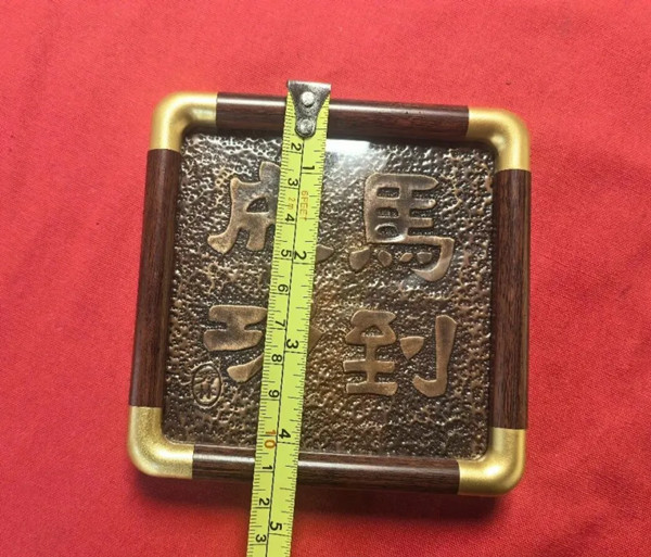 該作品堅守傳統(tǒng)鍛銅技藝精髓,全程以手工打造:匠人將質(zhì)地溫潤、色澤醇厚的紫銅(純銅)板精準加熱至適宜溫度,使銅板質(zhì)地變軟具備可塑性,再憑借嫻熟的捶打、鏨刻、塑形技藝,讓銅料隨匠心漸成雛形。待自然冷卻后,銅板恢復(fù)堅實質(zhì)感,一件兼具造型美與工藝美的鍛銅作品便初現(xiàn)輪廓,每一道細密的捶痕都凝聚著手工技藝的溫度。作品尺寸精巧為 11.5cm × 11.5cm,搭配中式方形外框,鏡框的溫潤與金屬的厚重相得益彰,既強化了中式器物的典雅氣質(zhì),也便于收藏、陳設(shè)與禮贈。
