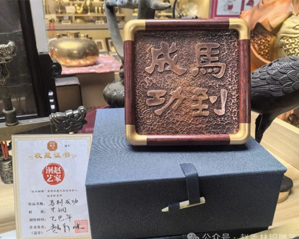 從原料甄選到加熱塑形,從精雕細琢到冷卻成型,趙家銅藝作坊的匠人們以傳承百年的銅雕技藝積淀,在方寸紫銅之上精研每一處細節(jié)。作品不僅是一件承載新春祝福的文創(chuàng)藝術(shù)品,更讓傳統(tǒng)銅雕工藝在馬年迎新的語境中煥發(fā)出新的生機,為即將到來的丙午新春增添了一抹濃郁的傳統(tǒng)工藝色彩。無論是置于案頭點綴歲時,還是作為禮贈傳遞心意,這件《馬到成功》都以銅為媒,將“策馬揚鞭、順遂如意” 的美好期許凝于方寸之間,成為連接傳統(tǒng)技藝與當(dāng)代生活的溫暖載體。